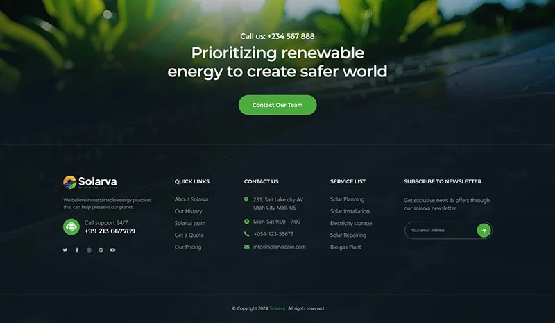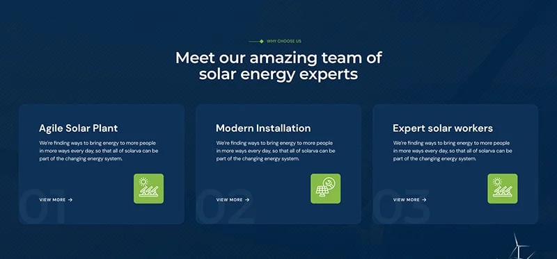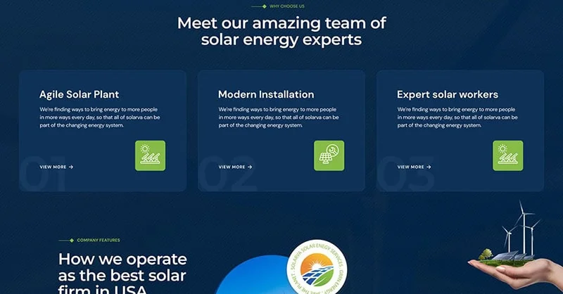 We are Solarva. It is designed as a modern & functional website for Solar Panel & Renewable Energy businesses.